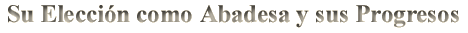 Volaba esta insigne virgen con vigorosos alientos por la dilatada esposa de la perfección; y habiendo fallecido el año de mil seiscientos y once la Madre Sor Isabel del la Corona, primera Abadesa, y Fundadora de aquel Monasterio ( se trata de un error, puesto que la primera abadesa del convento, y por tanto fundadora del mismo, fue sor Juana de la Magdalena), cuyas compañeras se restituyereon a su Convento de Sevilla, puso la Comunidad los ojos en Sor María de Santa Clara, para elegirla por Prelada. Sobrabanle las predas, y virtudes para ejercer el oficio, más le faltaban años para el ministerio de Abadesa, por tener solos ventisiete para ejercer el oficio, y fue nombrada Presidenta en el de mil seiscientos y once; y en el mil seiscientos y trece la eligieron con toda solemnidad, y común aclamación en el oficio de Abadesa, que ejerció por espacio de once años. Después a costa de muchos ruegos consiguió la eximieren de la Prelacía, y restituida al estado de súbdita, lo fue con tal rendimiento, que se conservaba en el paraje de Novicia.