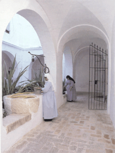 Los días transcurren dentro de la clausura de acuerdo a las pautas establecidas por la comunidad, sujetas a la Regla y vigiladas por el alma de la Madre Abadesa que tiene la obligación y el deber de modelar la trayectoria cotidiana de este monasterio con ya cuatro siglos de edad. En realidad, no se diferencia la vida en su interior mucho de la vida del mundo, salvo si cabe en el espacio que a uno le rodea. Cada cual está sujeto en la sociedad a acatar unas normas establecidas que llamamos leyes y que están vigiladas por las fuerzas de seguridad del Estado y promulgadas por los representantes legales del pueblo. Igual sucede en la clausura, sus leyes se recogen en la Regla, y su vigilancia recae en la Madre Abadesa. |