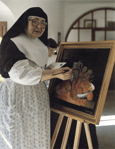 En todo el monasterio reina un silencio que no entristece, al contrario, producía, como ya hemos dicho, una extraña sensación de paz y sosiego nunca experimentada. A pesar de este estado silencioso, se percibe vida por cada uno de los rincones, todo el monasterio está inundado de vida. Vida que brota a borbotones en cada sonrisa de las monjas. Recuerdo en estos momentos, como durante los preparativos de la foto de la comunidad, por equivocación nuestra, se vieron obligadas a esperar posando durante más de 30 minutos. Ni una queja salió de labio alguno, con infinita y bondadosa paciencia esperaron a que pudiéramos realizar la foto, incluso, ante los lógicos nerviosismos que partían de nosotros, se permitían hacer chistes para tranquilizarnos y demostrarnos su total complacencia. Entre ellas, fué Sor María de San José Gamito la que más bromas gastaba, la que más alegría radiaba. Más tarde, nos enteramos que en esos momentos, esta monja estaba luchando a vida y muerte con el cáncer. Murió pocos días después sin poder disfrutar del anhelado IV Centenario de su casa, en sus palabras siempre animando, preguntando, interesándose por nuestro trabajo como si fuese el más importante del mundo. |